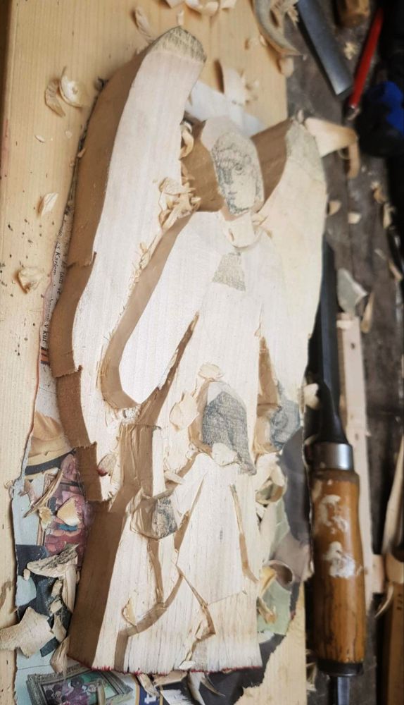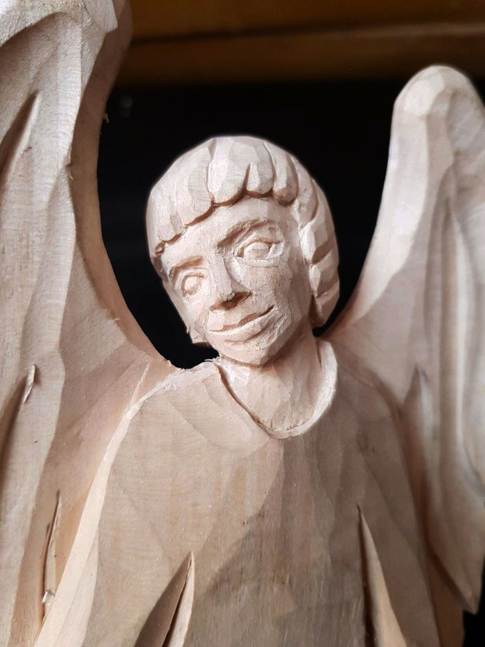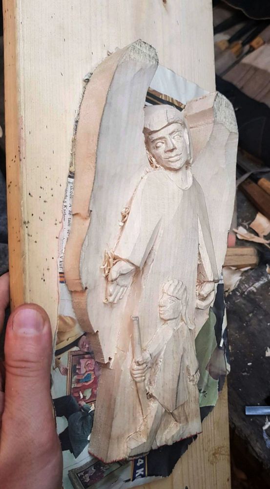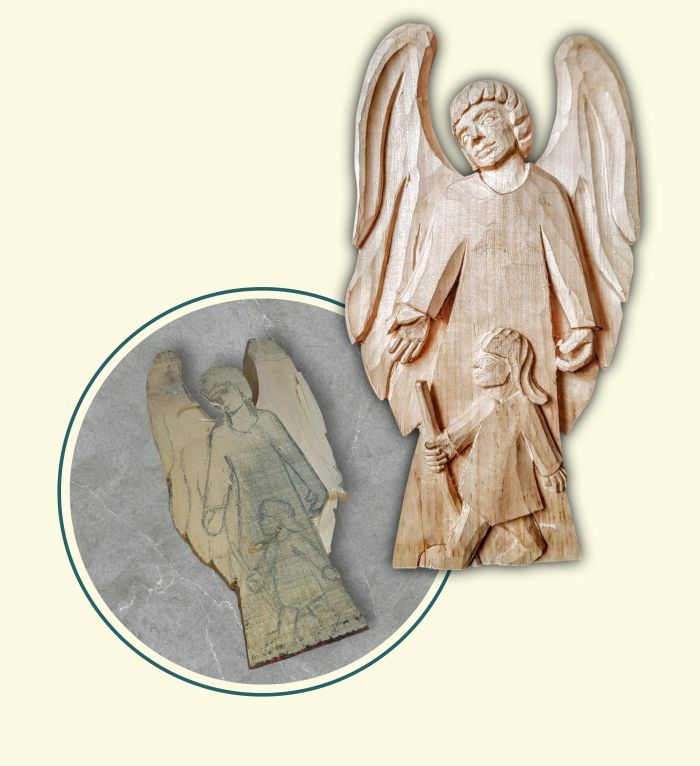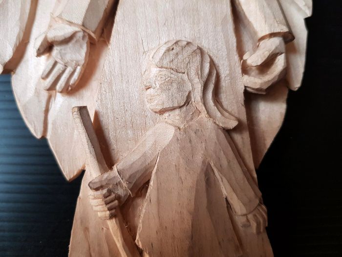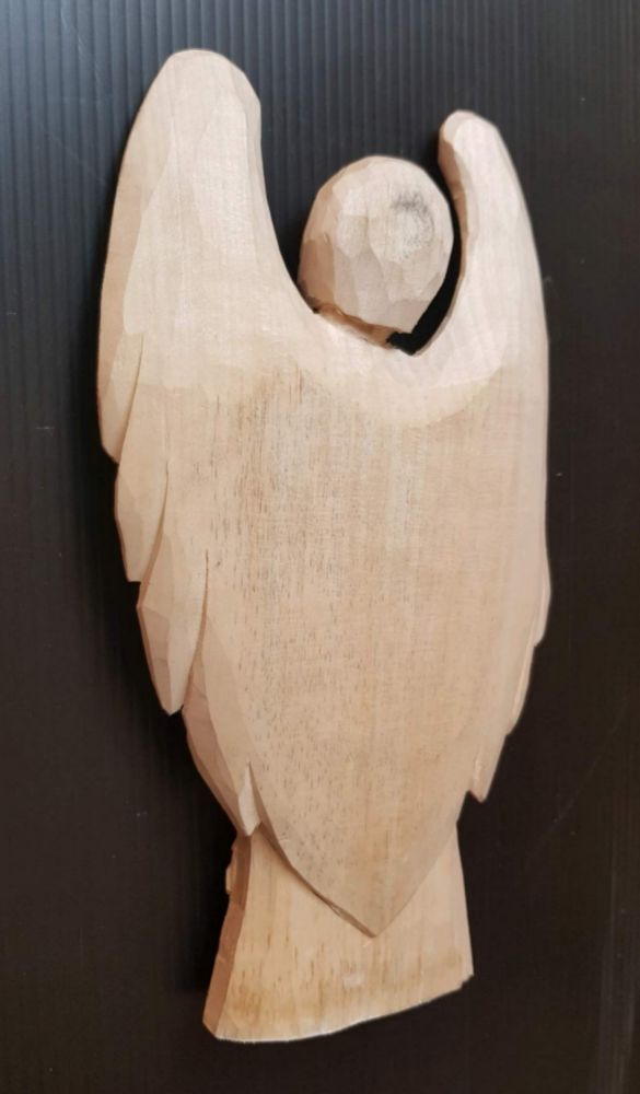 Předřezaný polotovar anděla strážného z lipového dřeva. Perfektní výrobek pro nacvičení jednoduché reliéfní řezby pro začátečníky i pokročilé.