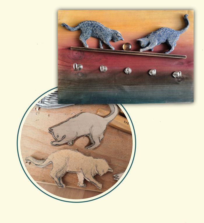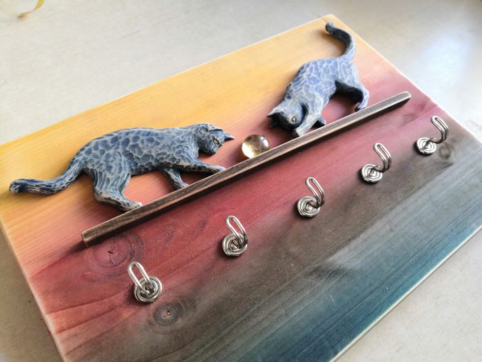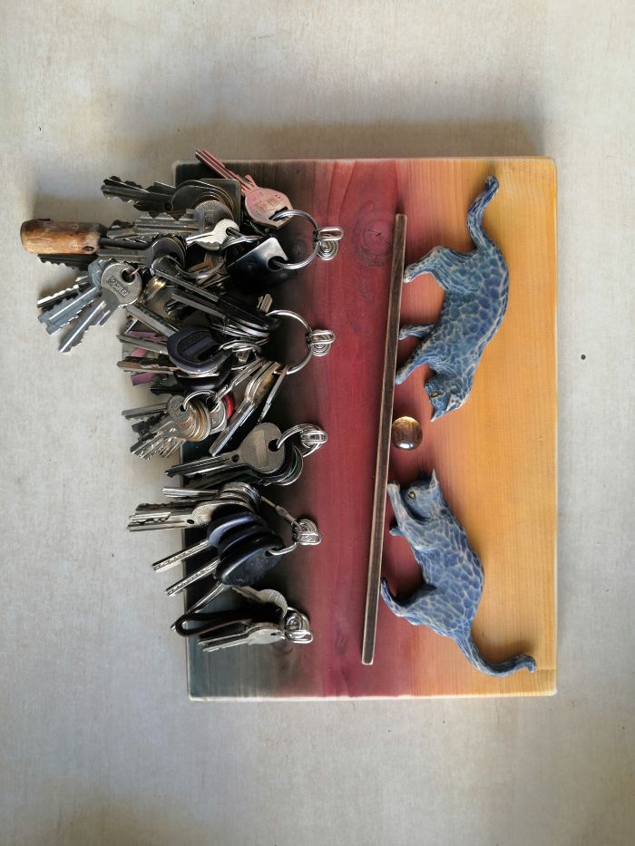 200 KčRůzných klíčů máme každý doma dost a někdy putují sem a tam a nemají žádné pevné místo. Proto se hodí udělat si v nich trochu pořádek a umístit je přehledně na nový věšáček. Třeba Vás upoutá právě takovýto hravý s dvěma kočkami.