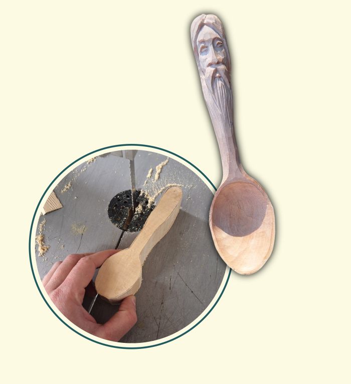100 KčPředřezaný polotovar lžíce s fousatou tváří z lipového dřeva.