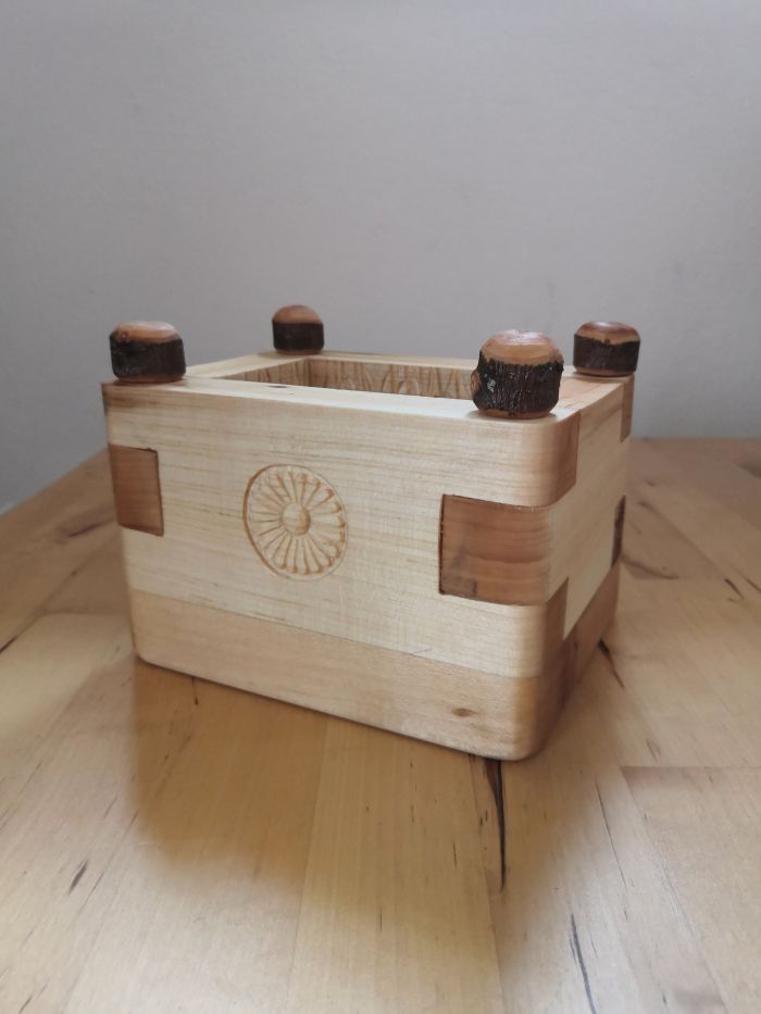 Materiál: lipové dřevo, 4 bukové kolíčky o průměru 6mm a délce 9,5 cm